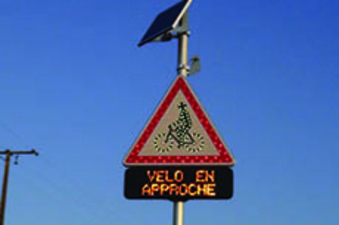 This kit consists of illuminated signs and boards that are automatically activated when a bicycle is detected approaching a zone at risk, alerting motorists to the presence of the cyclistThis solution contributes to resolving some of the issues of urban and interurban environments and reinforces users’ alertness thanks to a system of interconnected illuminated boards and sensors, without necessitating extensive roadworks.